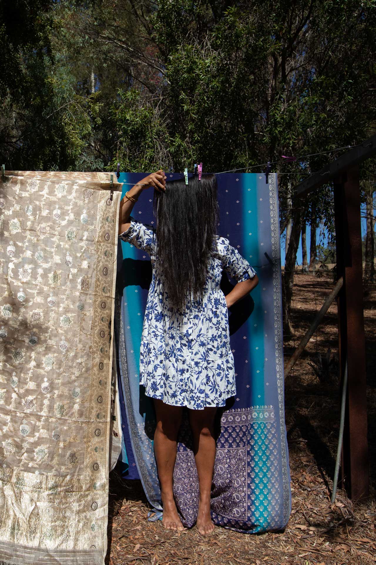 'Pride of India'. Self-portrait in my wedding dress, Bridgetown, Western Australia, ongoing (Embroidered Photographic Collage)